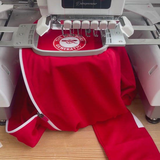 Relive the magical days at Highbury with this 'Highbury Generation' retro track jacket. In classic red with crisp white contrast sleeves, full zip & zipped side pockets featuring our exclusive 'The Highbury Generation' embroidery